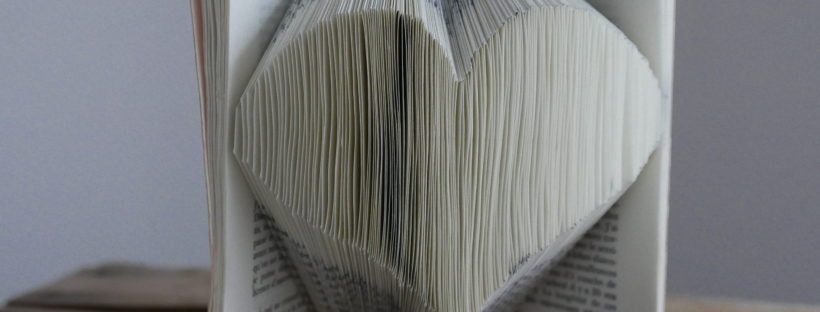 Pour mon premier livre plié j’ai voulu réaliser un coeur. Pour un mariage cela me semble tout à fait approprié ! Mais c’est également un des modèles disponibles qui me semblait abordable pour une première réalisation.