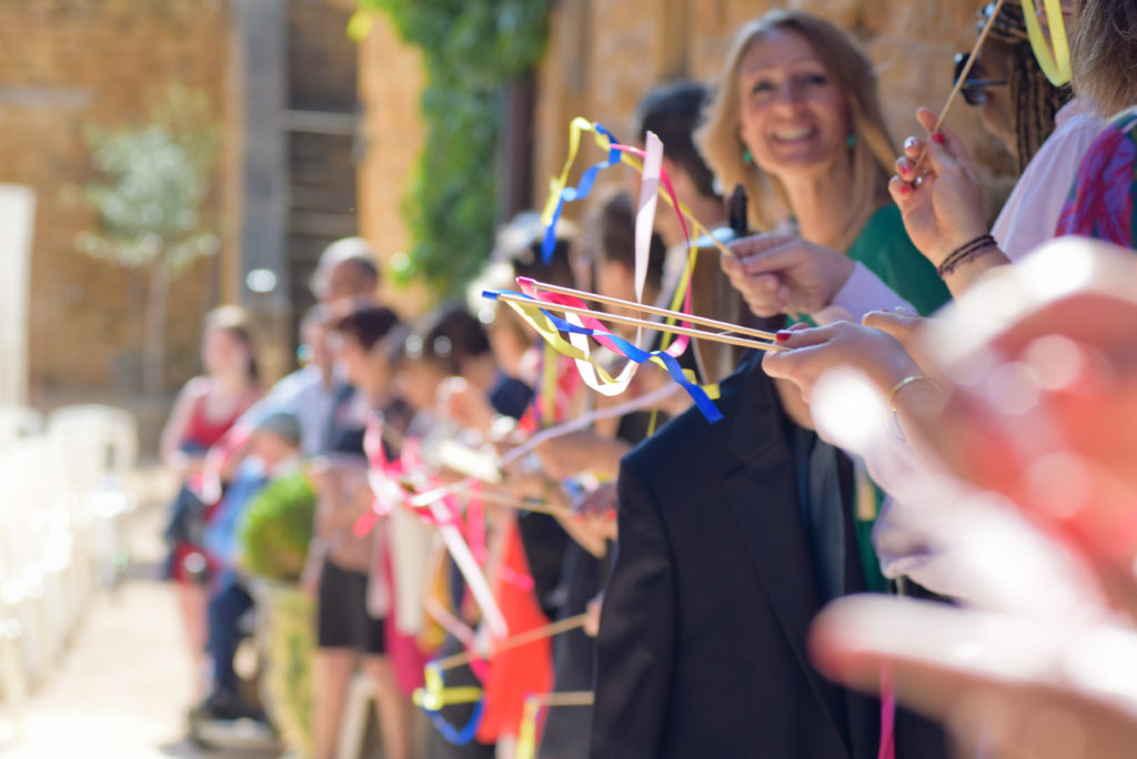 Encore un indispensable à mes yeux, les petits cotillons de la sortie des mariés. Problème, nous étions interdits (comme dans beaucoup de lieux y compris la mairie) de lancer quoi que ce soit qui reste sur le sol (sous peine d’un joli supplément en ménage).